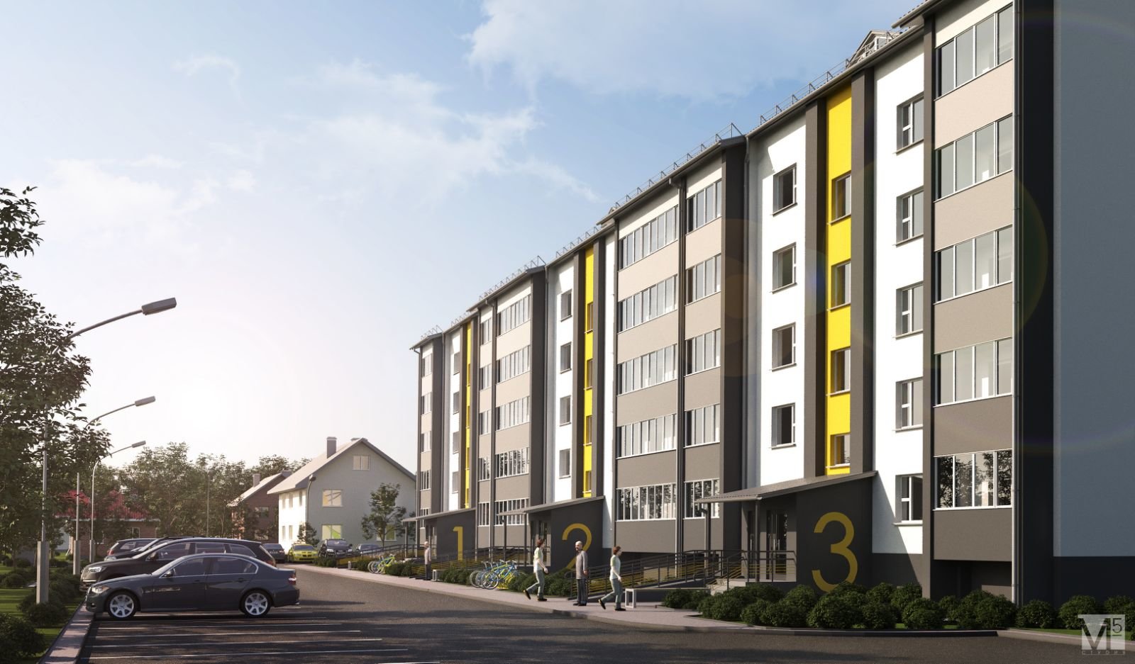 В 2 минутах ходьбы от дома расположены школа и детский сад, магазины продуктов, аптека, отделение банка.