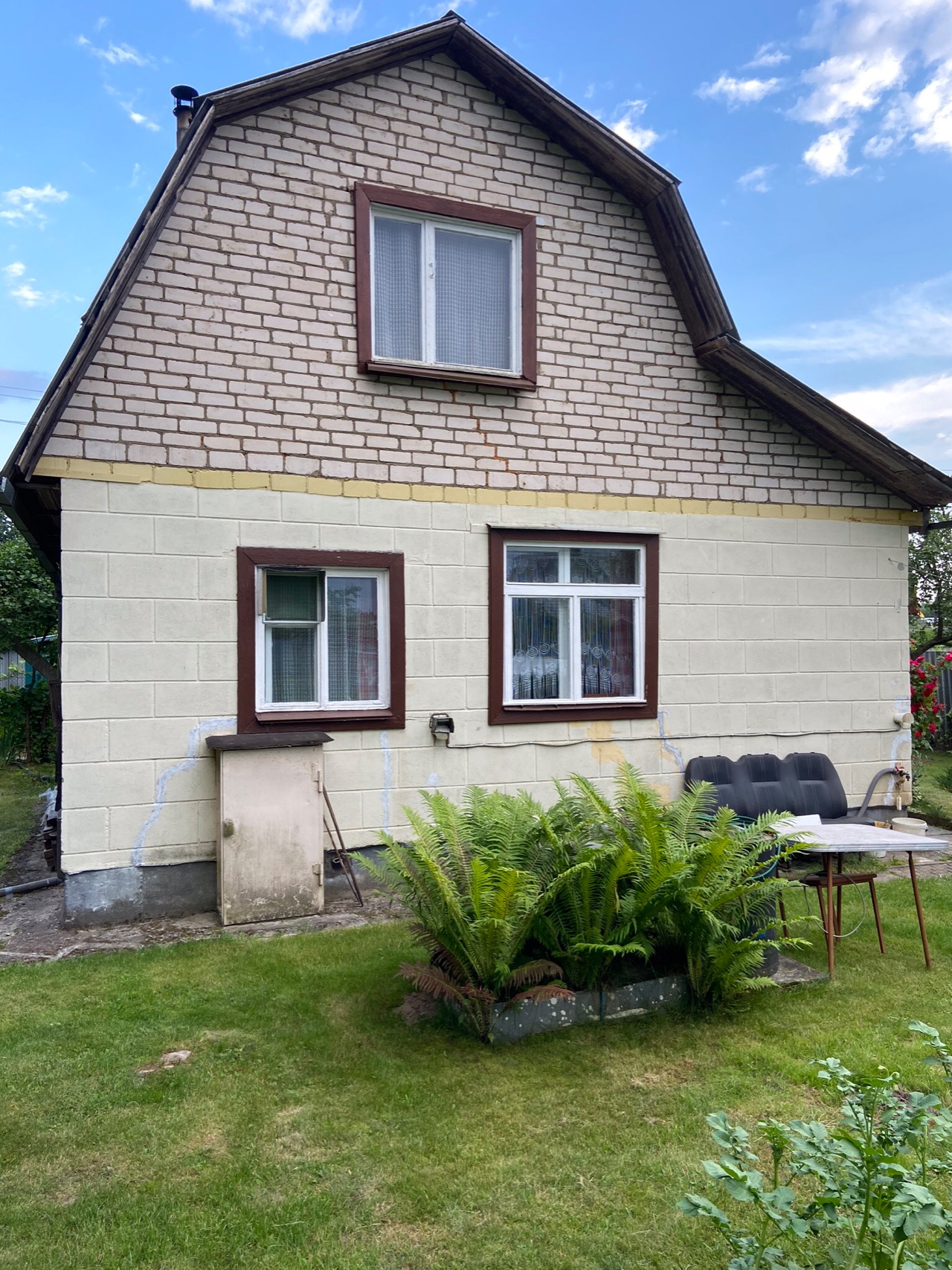 Дом выполнен из кирпича и оштукатурен. На первом этаже находится прихожая, кухня и большая гостиная комната. На втором этаже находиться 2 вместительные кладовки , коридор и спальня 15 кВ.м На первом этаже 2 года назад произведён капитальный ремонт пола. Есть настоящая русская печка . В холодный период прекрасно отапливает дом, хорошо держит тепло. На территории есть хозяйственный блок : сарай, душ и биотуалет. Пробита скважина. Вода проверенная в Санстанции и годна к употреблению в пищу. Каждый уголок территории ухожен, досмотрен, засажен плодово-ягодными деревьями и кустарниками. Соседи хорошие, спокойные.Большая половина участка засажена газоном . Есть грядки . Земля в отличном состоянии, всегда хороший урожай овощей. Участок сухой, весной вода не стоит на участке. Все продумано до мелочей ,для комфортного и приятного отдыха. В ста метрах от дома есть небольшой водоем ( речка). Мы открыты к диалогу! Звоните, приезжайте, смотрите, покупайте!!!!!! Больше фото в Вайбер