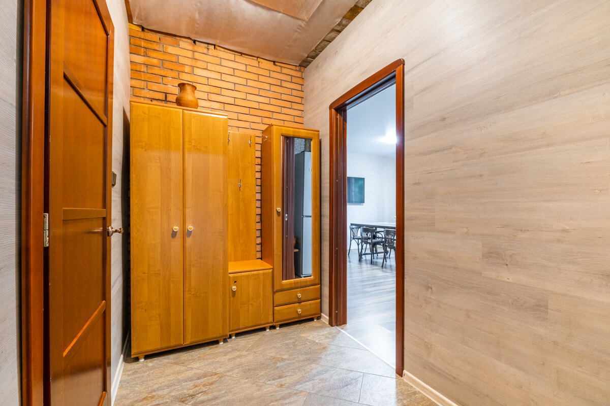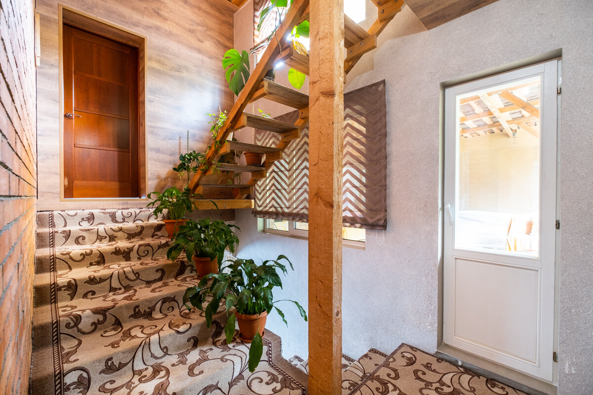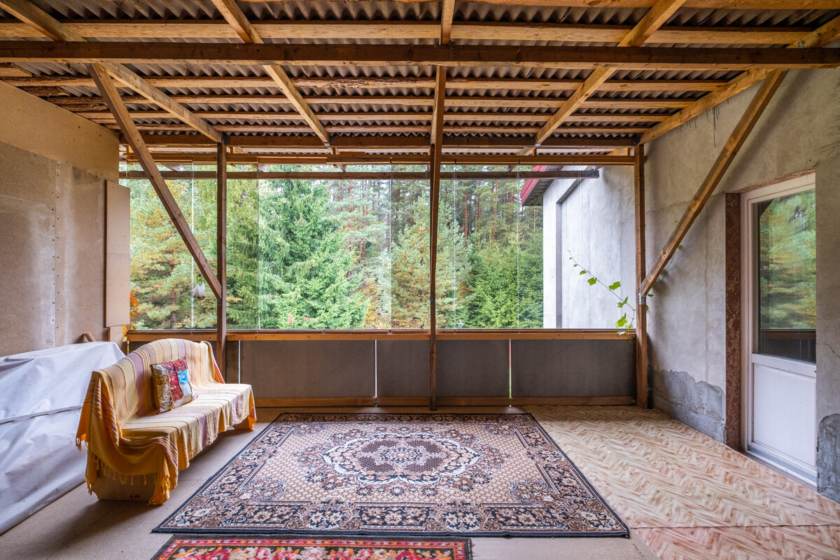 Выход на крытую террасу (36м2) с прекрасным видом на лес. Есть возможность, при необходимости расширения жилплощади, благоустроить большой мансардный этаж площадью более 40м2.
