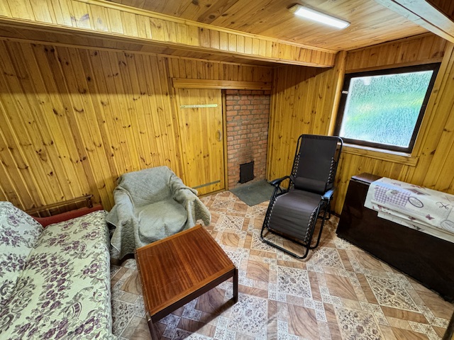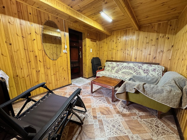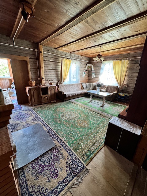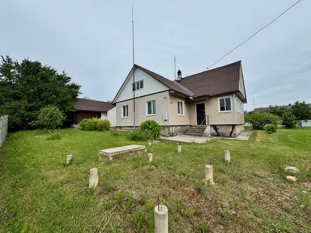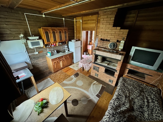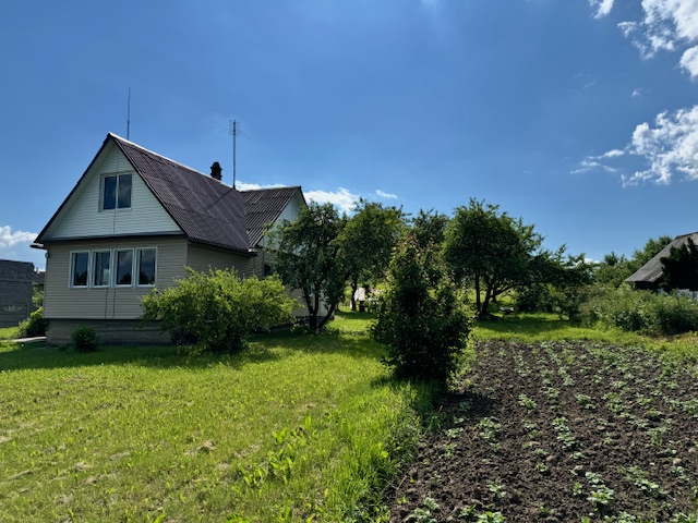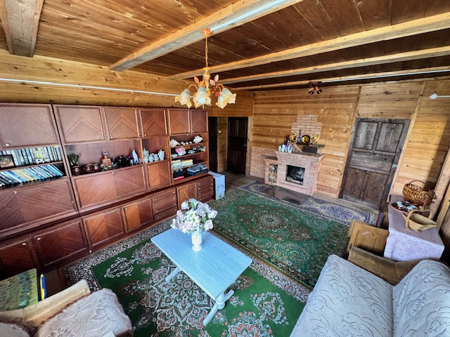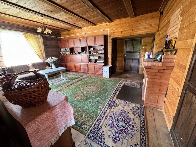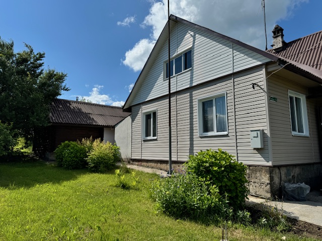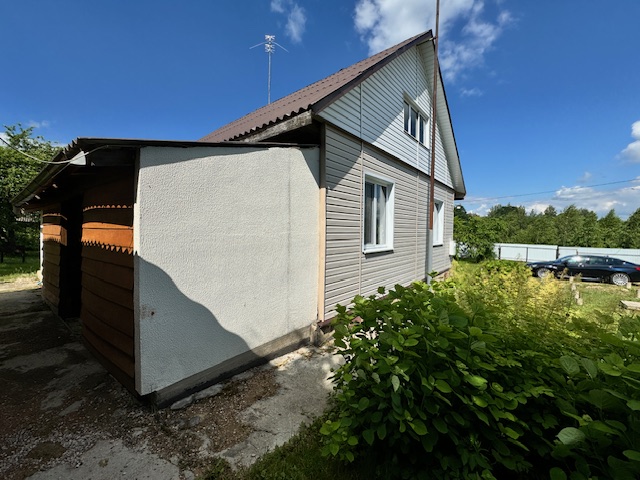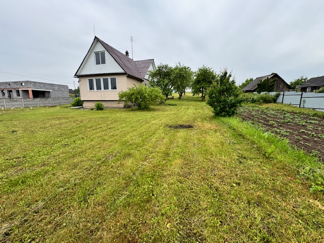 Дом одноэтажный с мансардным этажом, общей площадью 96,3 кв.м., зал, две спальни, кладовка, кухня 15кв.м., из натурального дерева, обшит сайдингом. Установлены окна их ПВХ. В доме расположен камин и печь, большая веранда (24,6 кв.м.). Дом обставлен мебелью. Имеется хозпостройка для инструмента и садовой техники, а также крытое помещение для дров. Мансардный этаж без отделки.