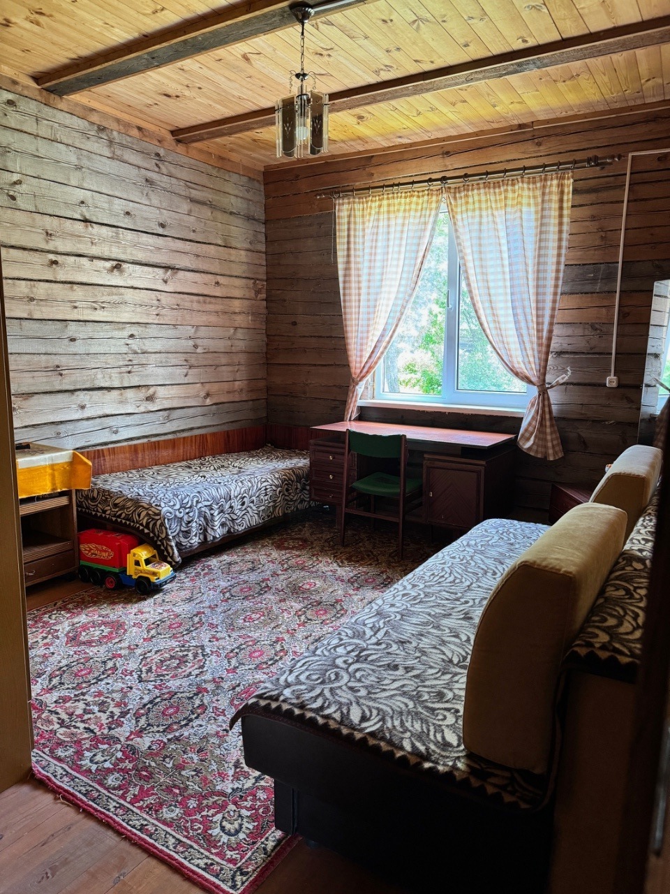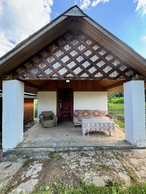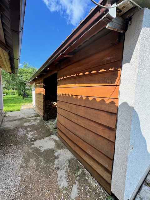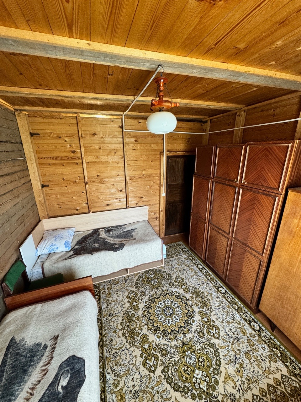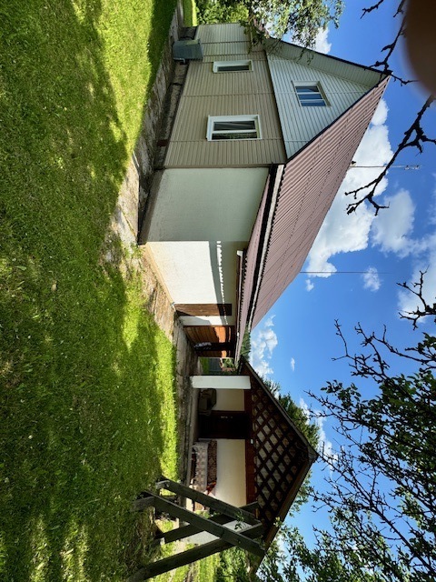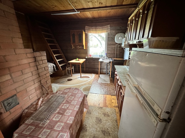 Дом одноэтажный с мансардным этажом, общей площадью 96,3 кв.м., зал, две спальни, кладовка, кухня 15кв.м., из натурального дерева, обшит сайдингом. Установлены окна их ПВХ. В доме расположен камин и печь, большая веранда (24,6 кв.м.). Дом обставлен мебелью. Имеется хозпостройка для инструмента и садовой техники, а также крытое помещение для дров. Мансардный этаж без отделки.