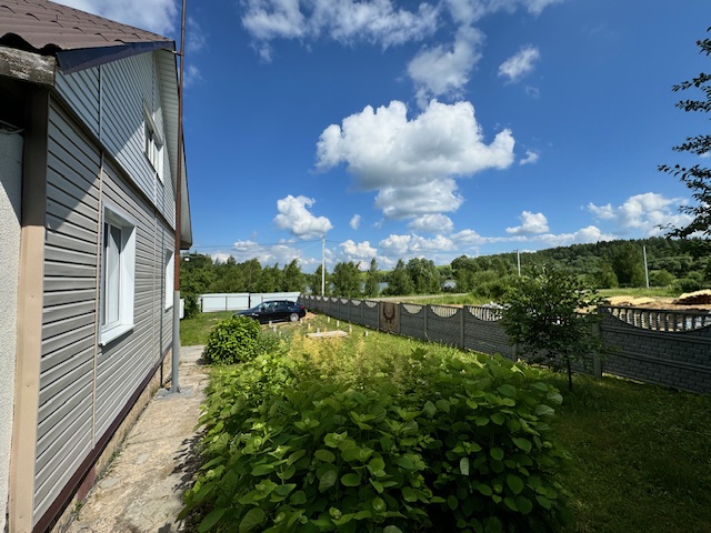Дом расположен на прямоугольном участке размером 36 на 70 метров и площадью 25 соток, с плодовыми деревьями, кустами и грядками. На участке расположена баня (36кв.м.), в саду - гостевой стол со скамьями. Также имеется скважина глубиной 25м, полностью оборудованная, в дом и баню подведена вода, подогрев бойлерами.