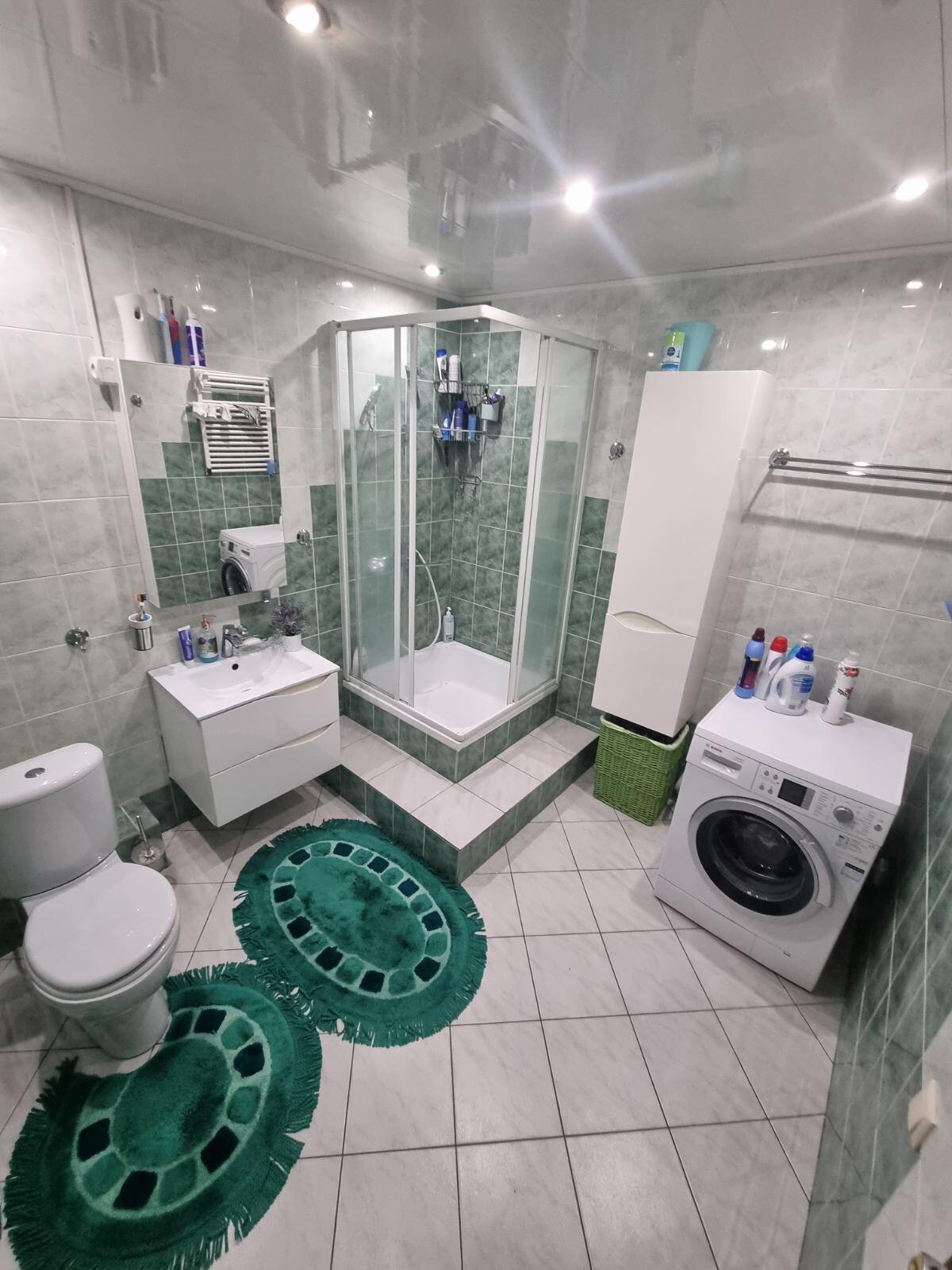 Кухня оборудована необходимой техникой – микроволновка, газовая плита, духовой шкаф, вытяжка, холодильник.