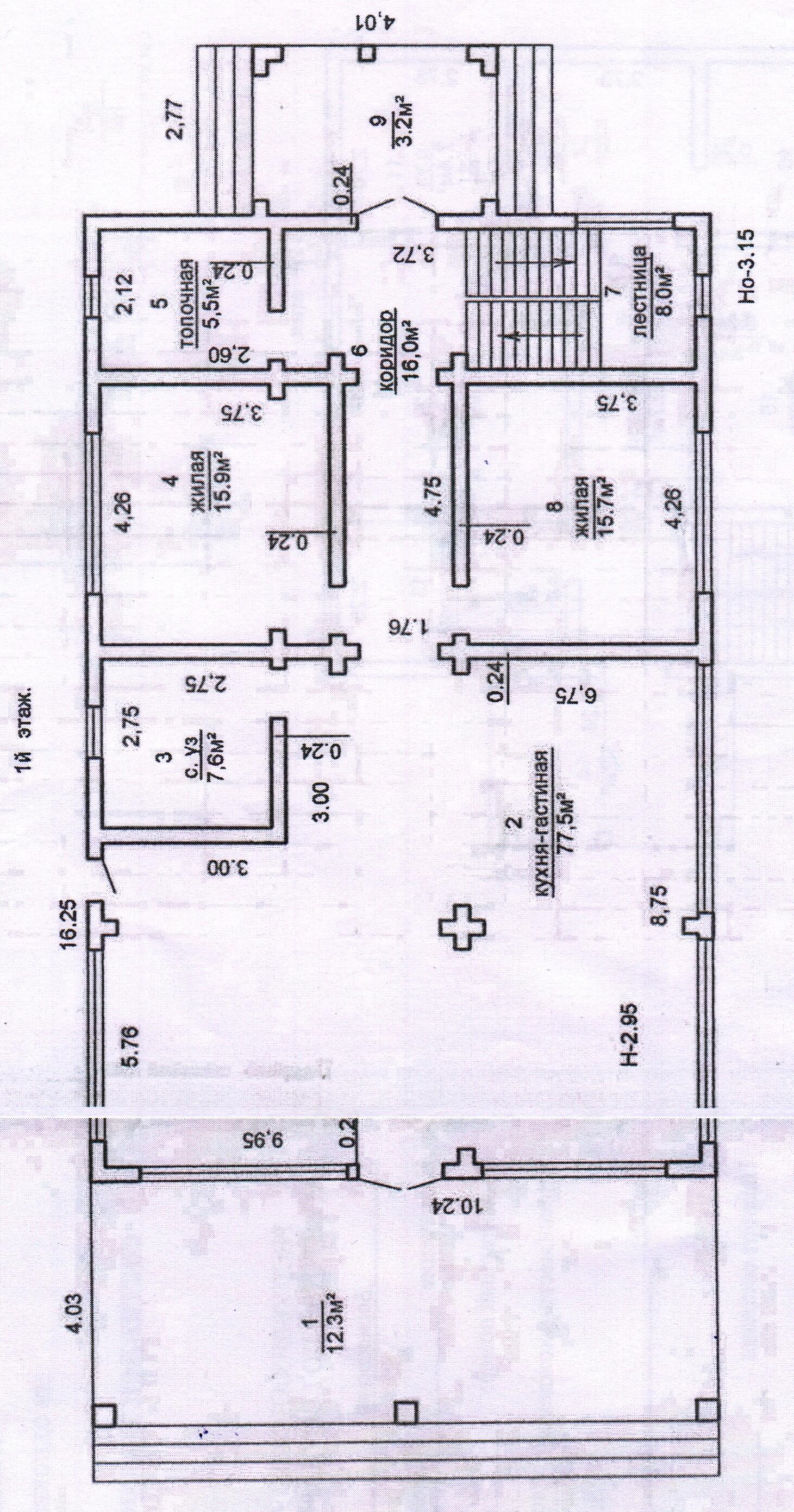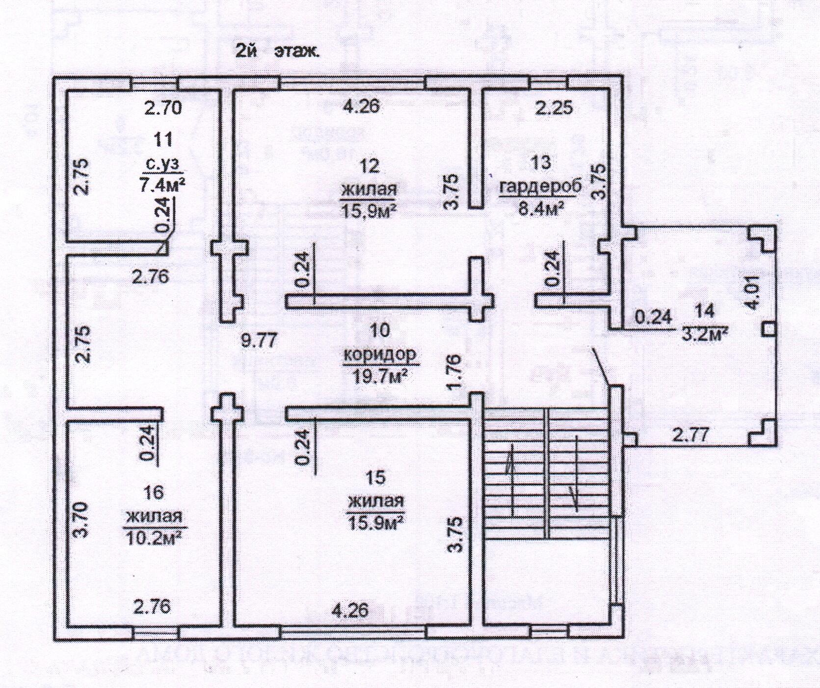 Общая площадь СНБ – 242,4 кв. м., общая жилая – 223,7 кв. м., жилая – 82,0 кв. м.