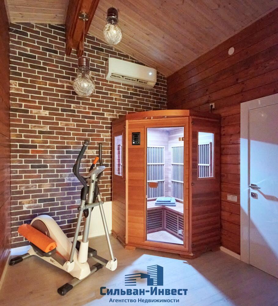 На 2-ом этаже 2 спальни, 2 функциональные гардеробные, санузел, инфракрасная сауна из сибирского кедра, уютная лаунж зона.