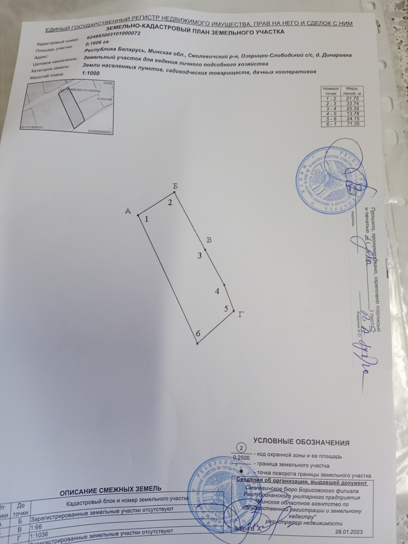 Собственник продает земельный участок 16 соток в деревне Динаровка (Озерицко-Слободской с/с, Смолевичский р-н, Минская обл.). Это живописное место в 18 км от Минска, окружённое лесами, полями и поселениями. Подъездные пути асфальтированы. Рядом сети: водоснабжения, электро- и газоснабжения. Участок подходит под строительство дома и ведения сельскохозяйственной деятельности. В деревне есть магазин, ходит пригородный транспорт. Координаты для Google Карты 54.026707, 27.974056.Моб. тел. +375293396921