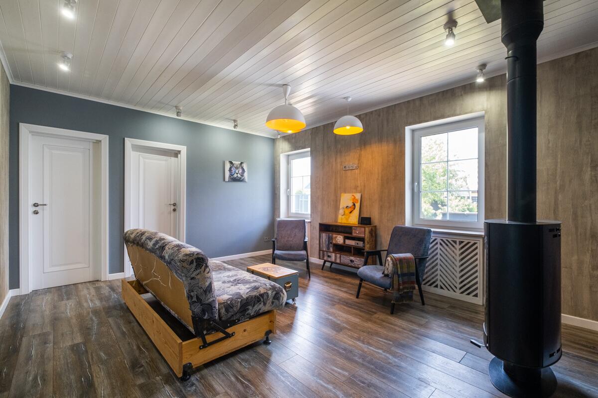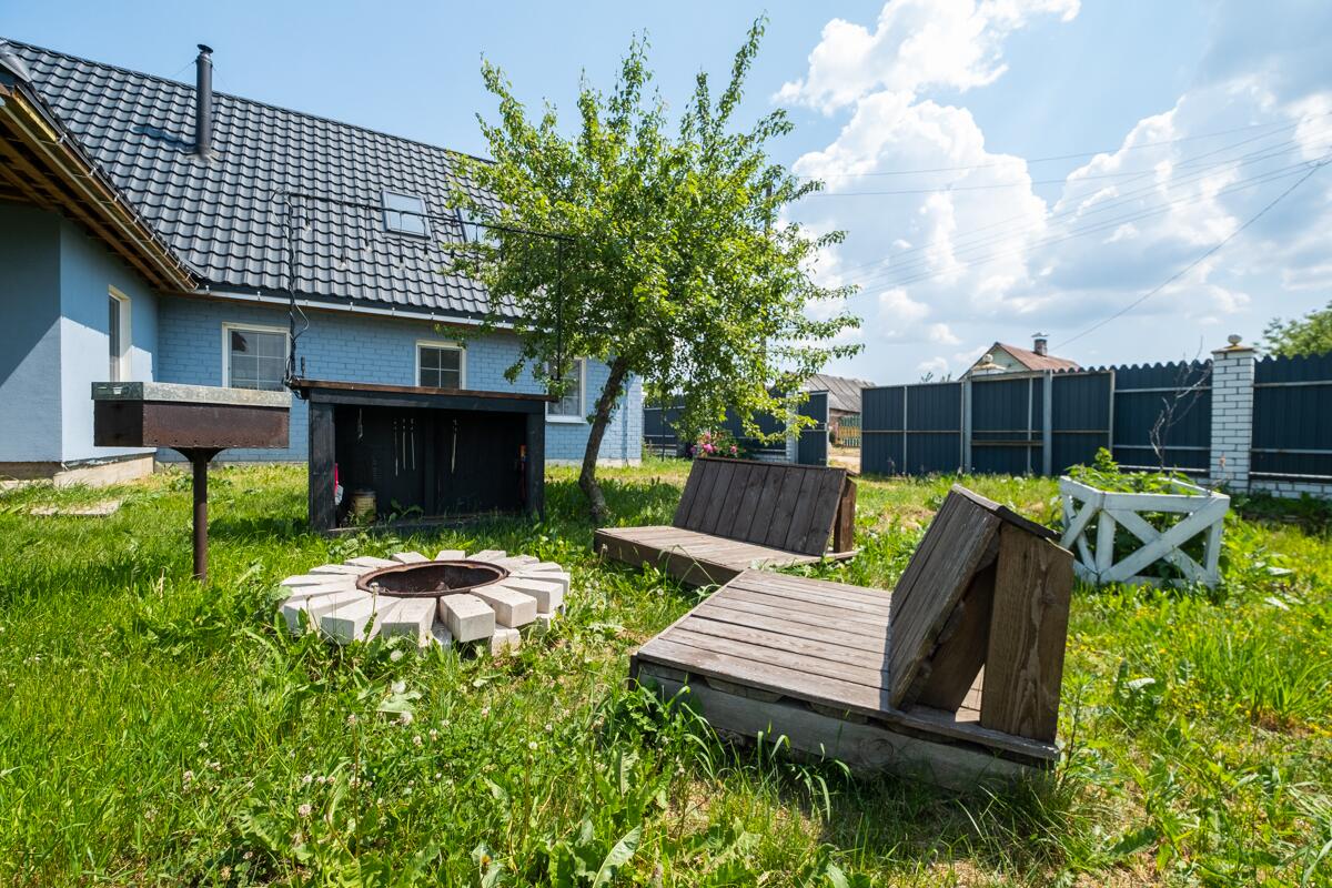 На участке вас встретят спокойные зеленые просторы, а в дополнение к дому — мастерская, баня с террасой, уютное место для отдыха с мангалом и кострищем. Место, где можно собраться с друзьями, где дети могут играть в безопасности, а вы — наслаждаться жизнью и природой.