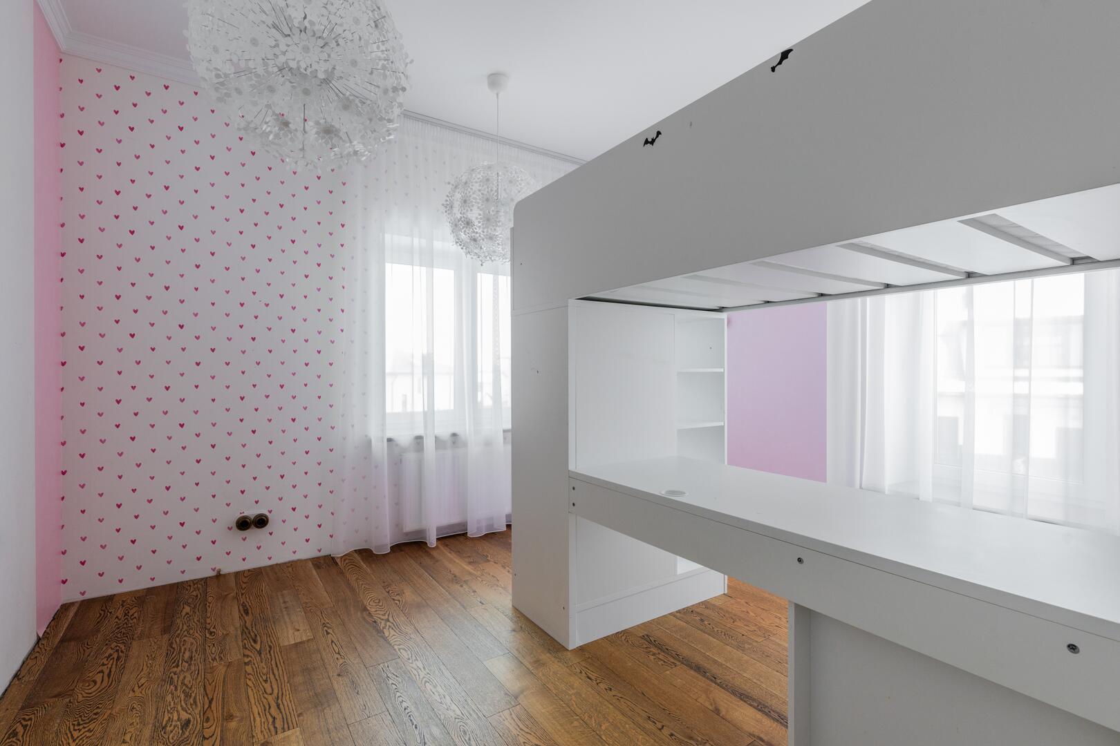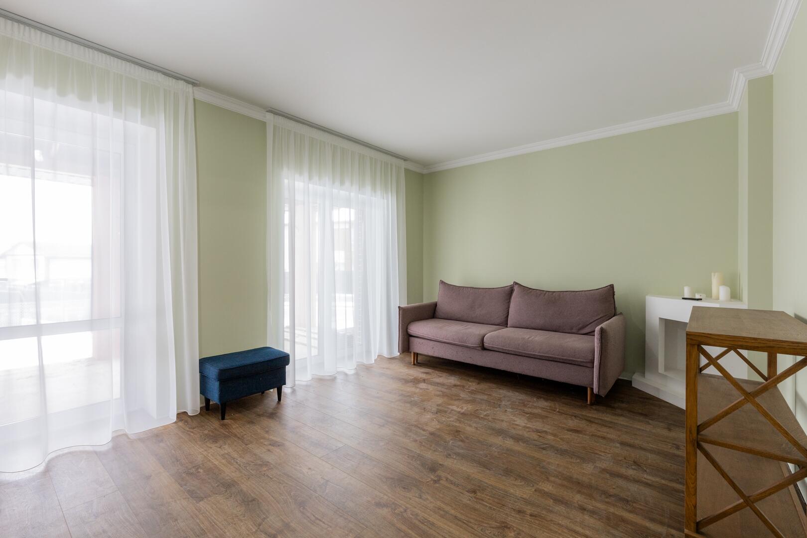 Для покрытия полов первого этажа использовалась плитка и кварцвинил. Полы второго этажа покрыты высококачественной паркетной доской.