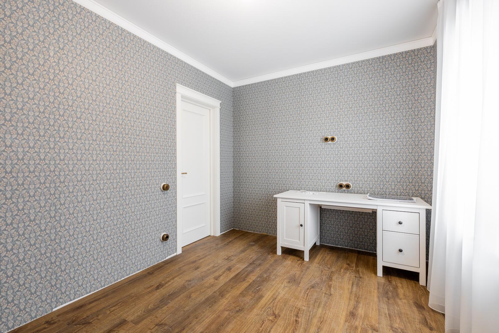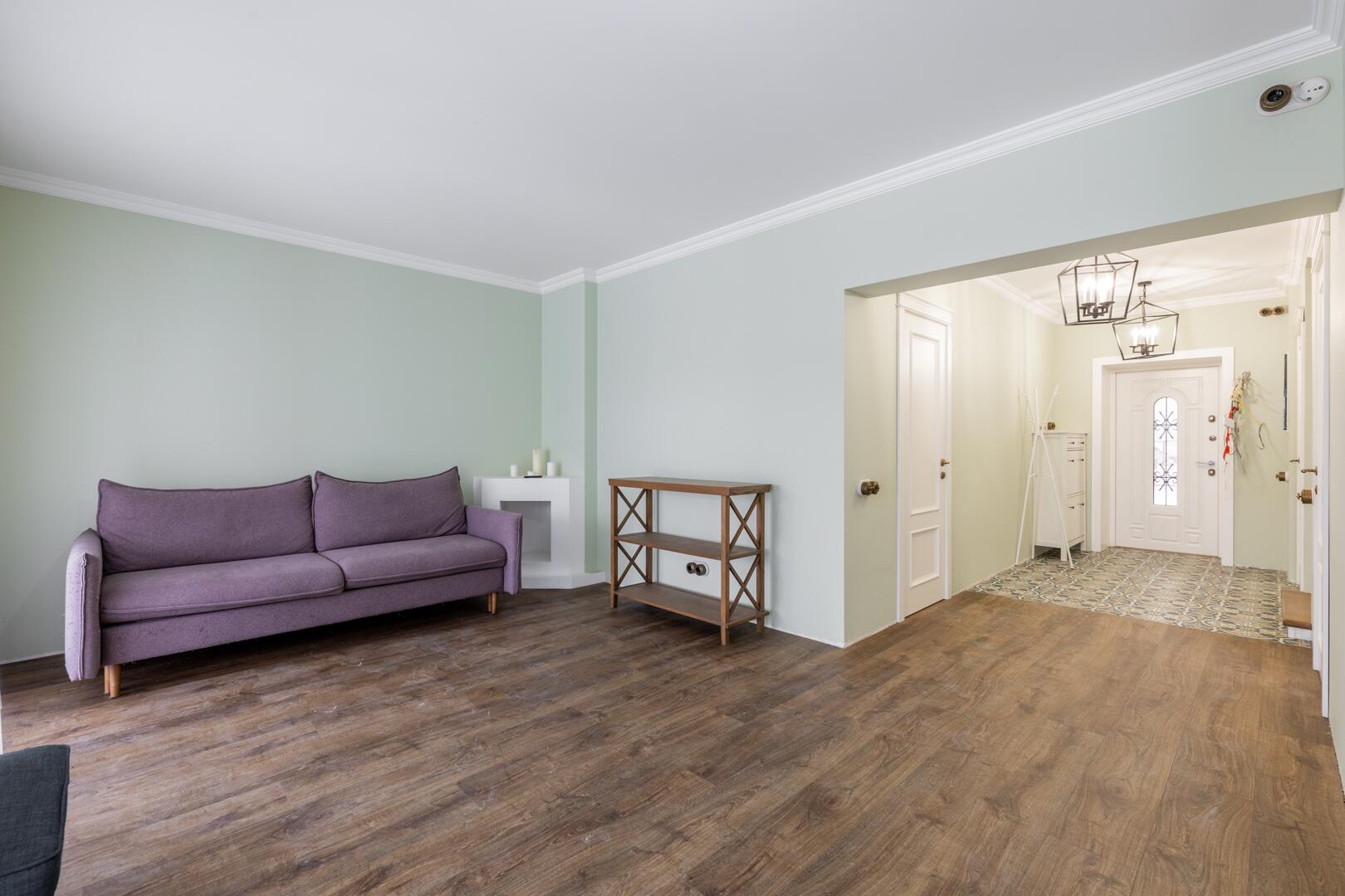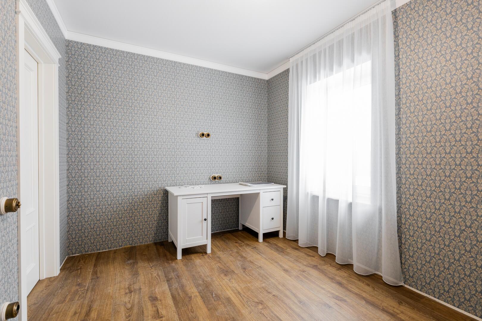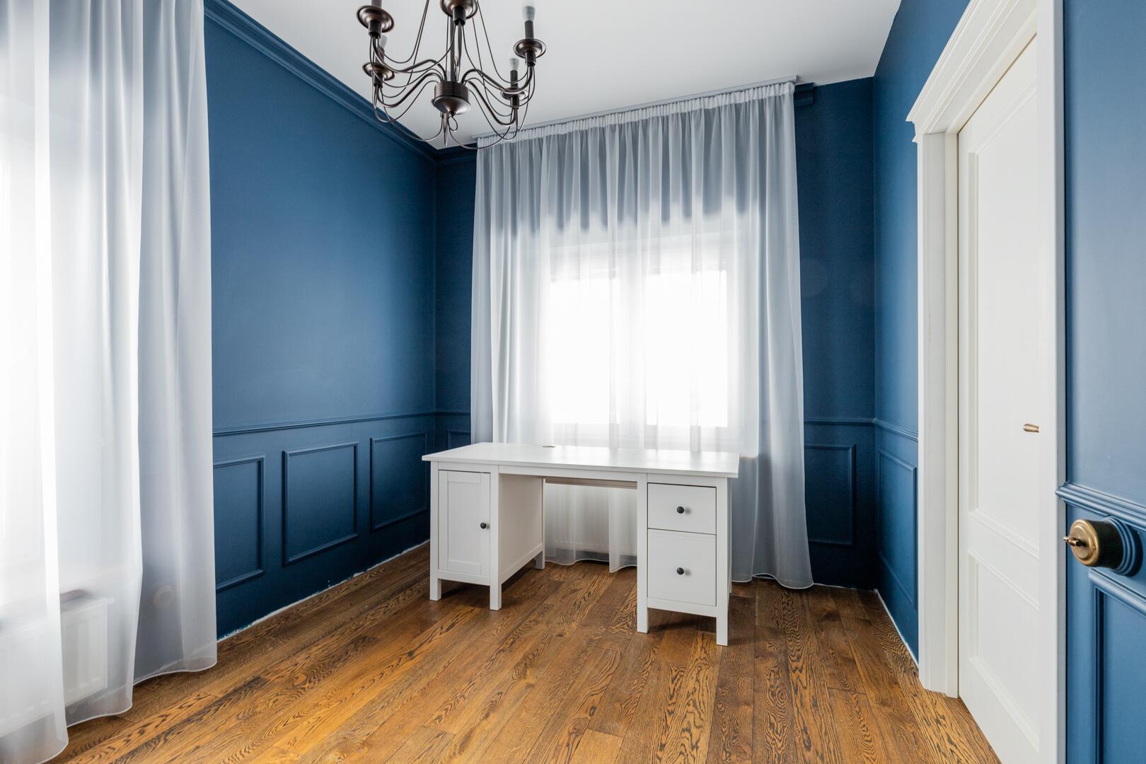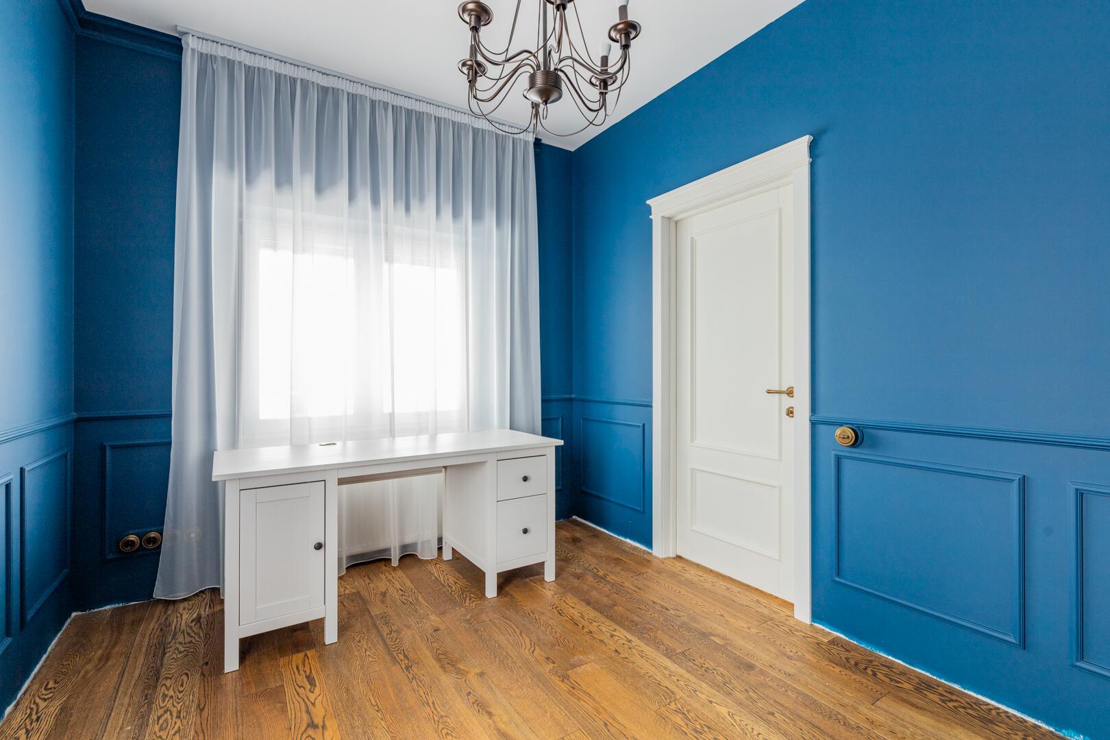 Межкомнатные двери установлены из массива, также в классическом стиле. Окна ПВХ с двухкамерным стеклопакетом.