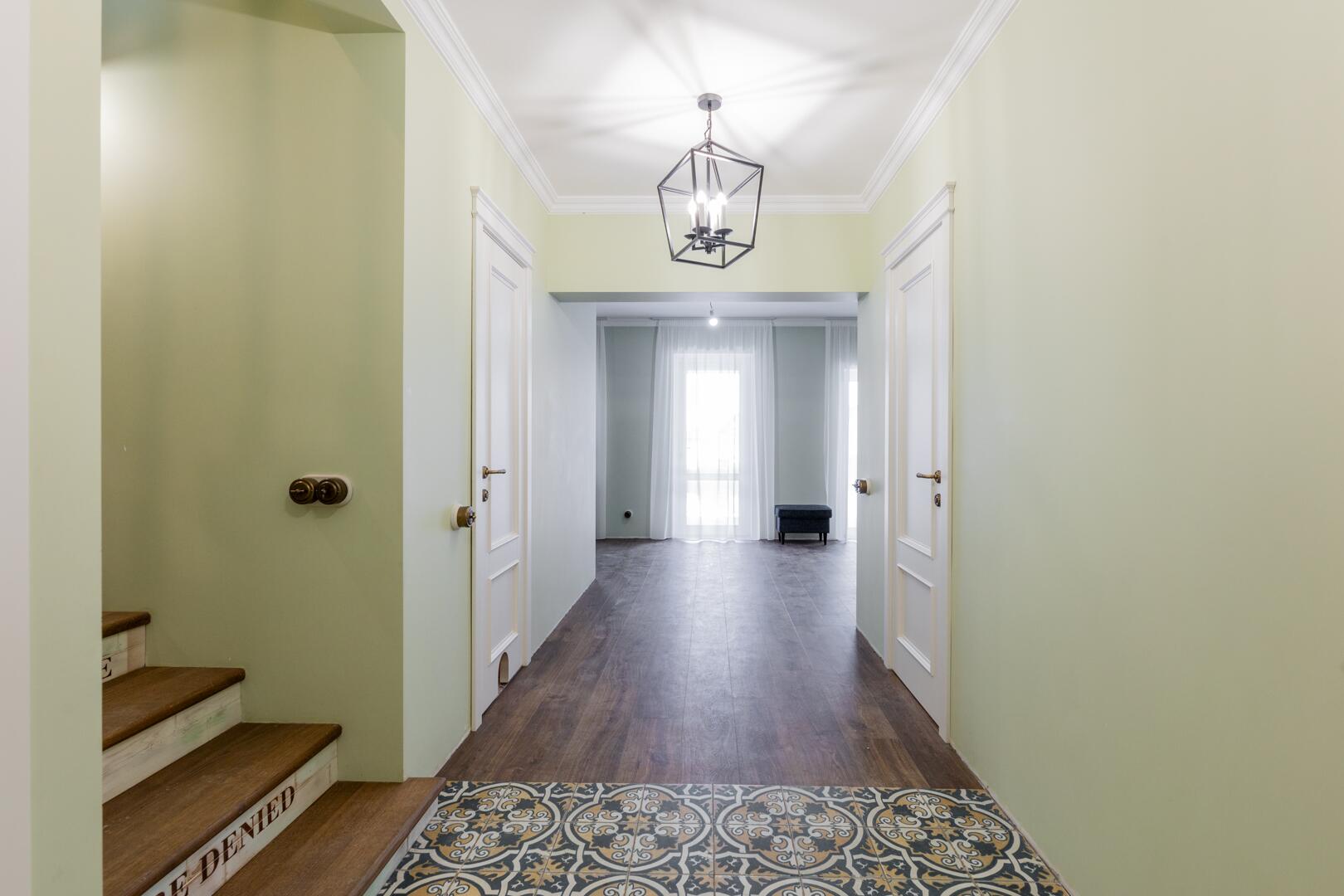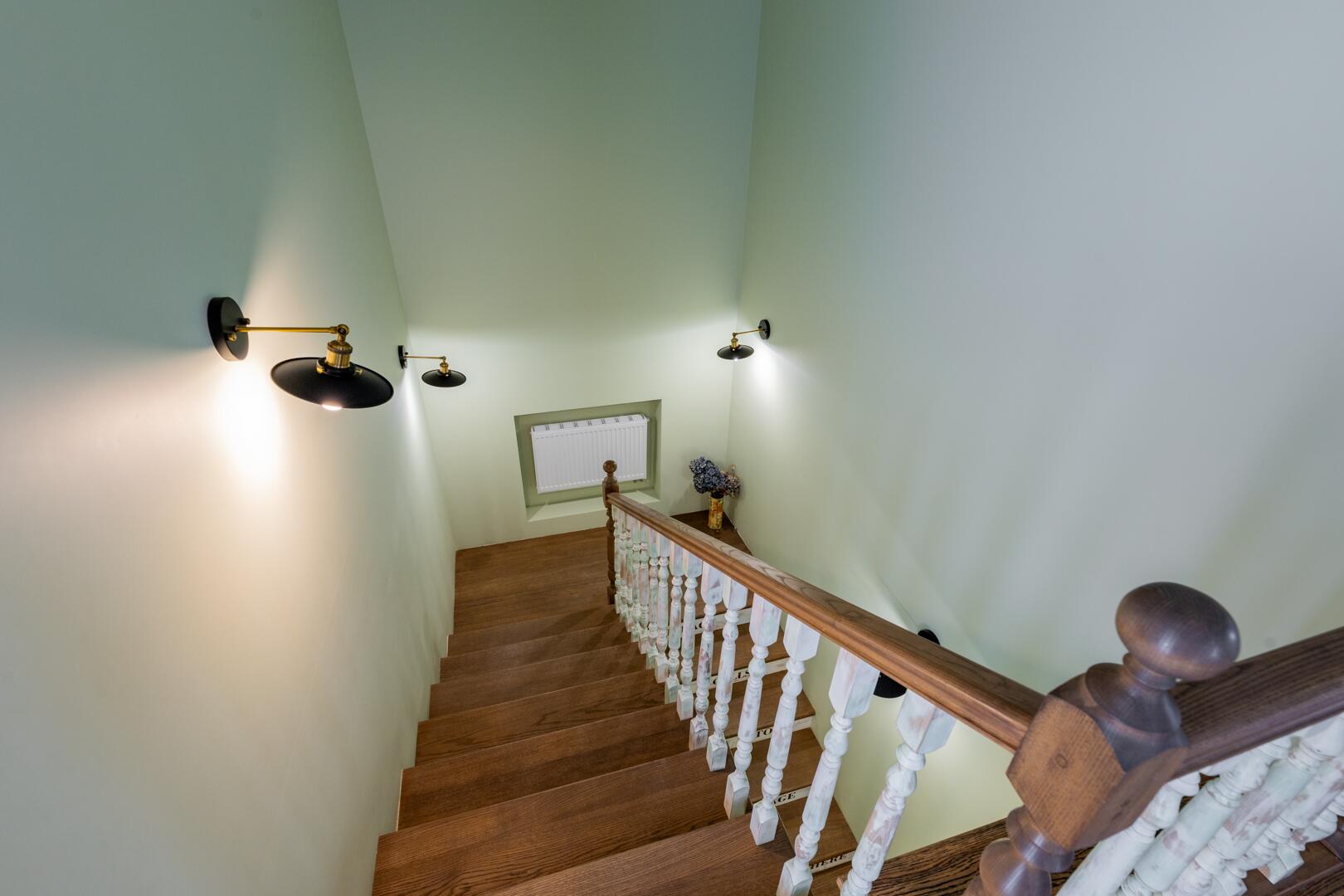 Ремонт в доме выполнен по дизайн-проекту в британском стиле. При выполнении отделочных работ использовались высококачественные импортные материалы, устанавливались дизайнерские светильники, а также розетки и выключатели в ретро стиле фирмы «Petrucci».