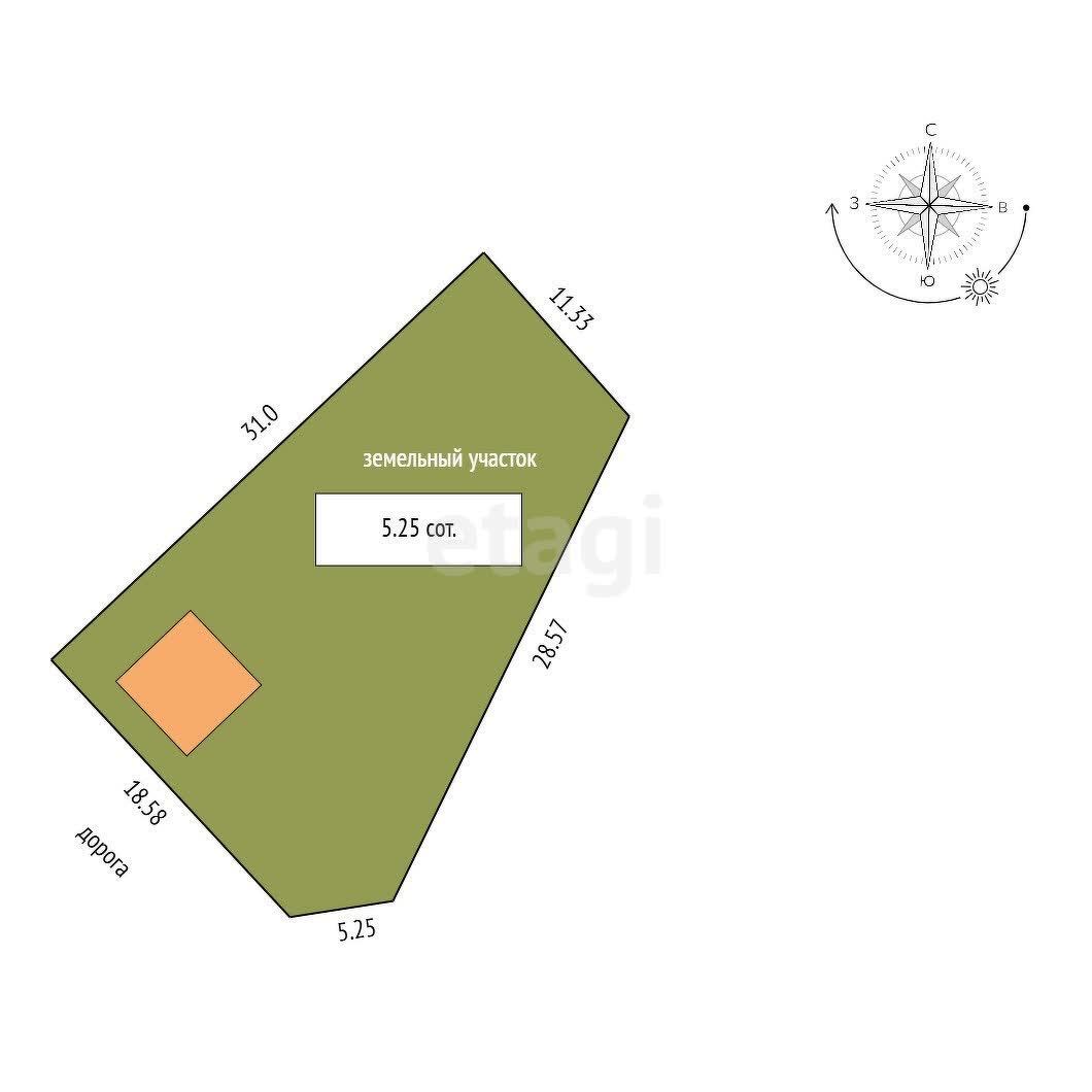 Дом расположен на углу улицы в высокой точке. Удачно смотрят окна по сторонам света (на северо-восток и юго-запад), что позволяет любоваться восходами и закатами. Также вид из дома не попадает на окна соседних домов.