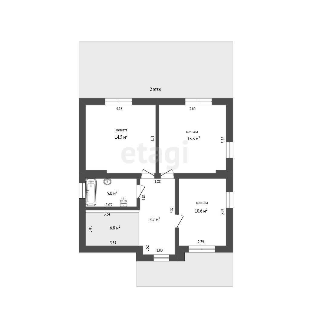 · На втором этаже расположены еще 3 комнаты и второй санузел с ванной.