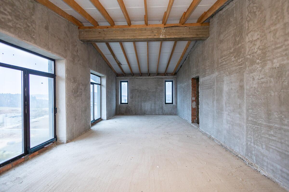 - Дом оштукатурен и полы с черновой стяжкой
