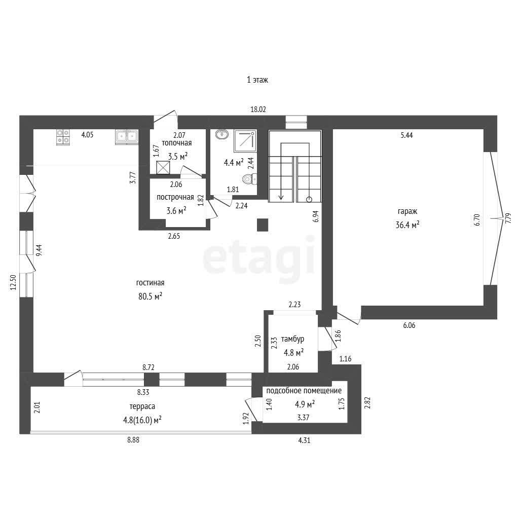 - Большая гостиная - 80 м2, 3 спальных комнаты, 2 с/у (в т.ч. ванная - 15,9 м2), Терраса - 16 м2, Гараж в доме - 36,4м2 (Гаражные ворота ТМ «Hormann»(на пульте)- Монолитная лестница на 2-й этаж