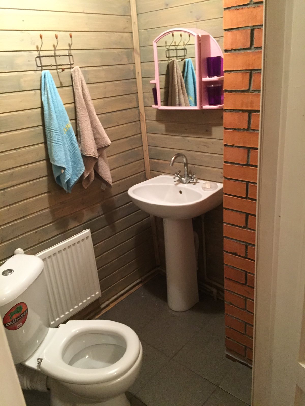 - всё, что нужно для комфортного проживания: 2 санузла, душевая кабина, кухня с холодильником и микроволновкой, телевизор.